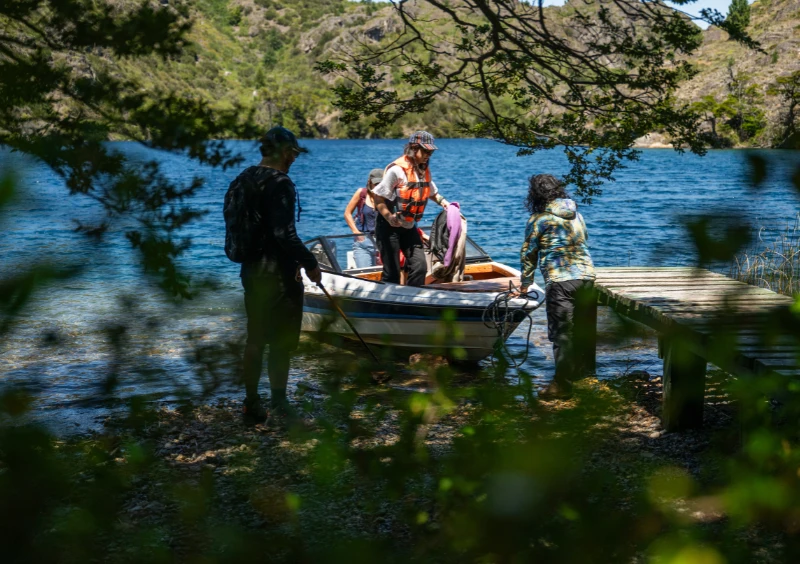Experiencia de pesca en bote en un entorno natural único, ideal para desconectar y disfrutar de la Patagonia.